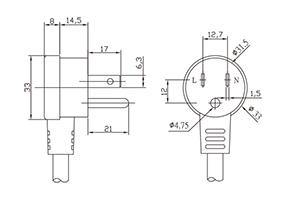 ST-211 Angled Power Cord for Japan is molded in a variety of colors, in any length, with opposite end terminated per customer specifications. A variety of wire types and sizes are available.